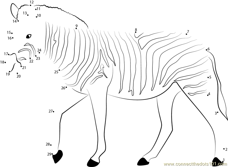 Zebra dot to dot from mammals category.